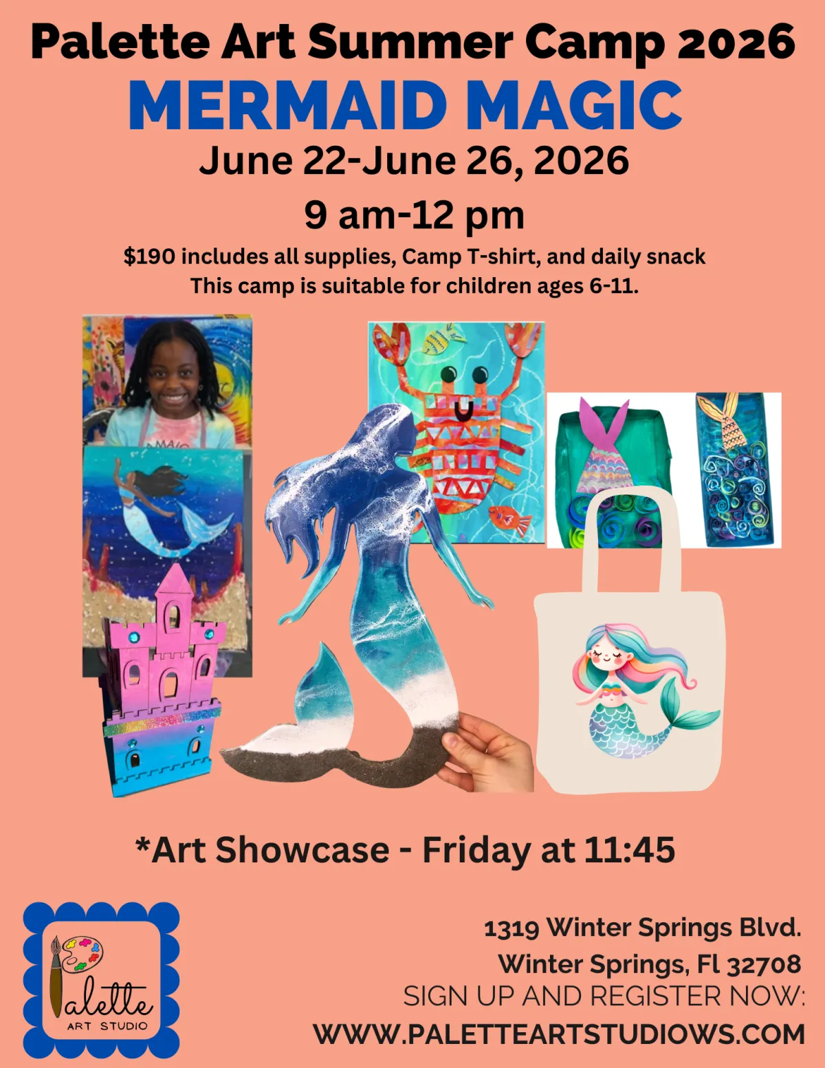 Come spend 5 days with us crafting themed art projects. All supplies are included, and you will receive a camp T-shirt. Please pack a labeled snack and water bottle for each day. We will have an Art Show on Friday at 11:45