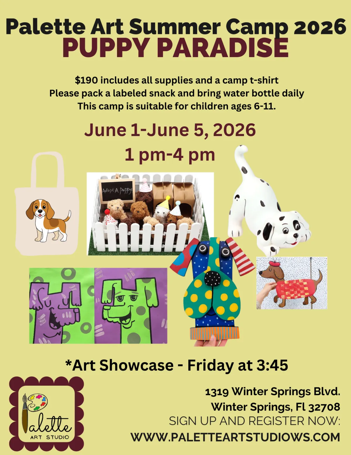 Come spend 5 days with us crafting themed art projects. All supplies are included, and you will receive a camp T-shirt. Please pack a labeled snack and water bottle for each day. We will have an Art Show on Friday at 3:45
